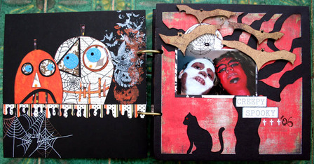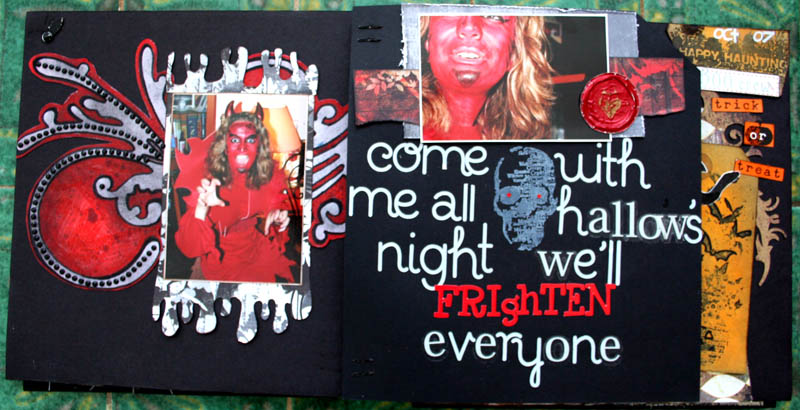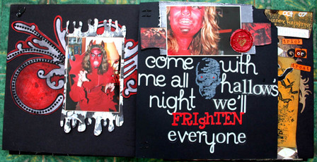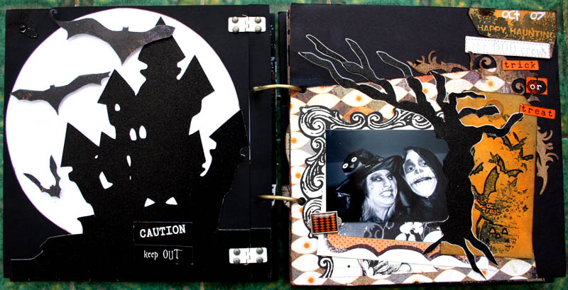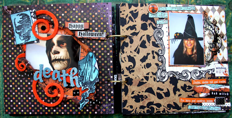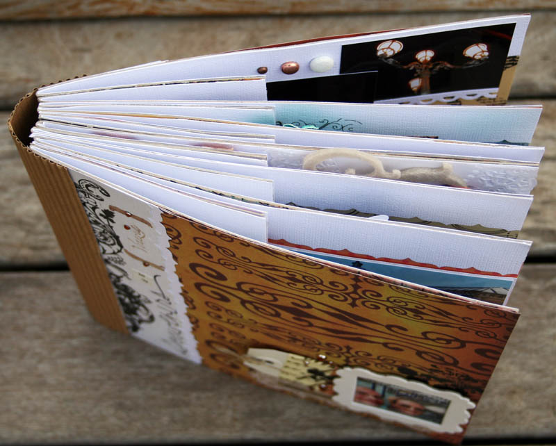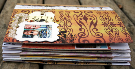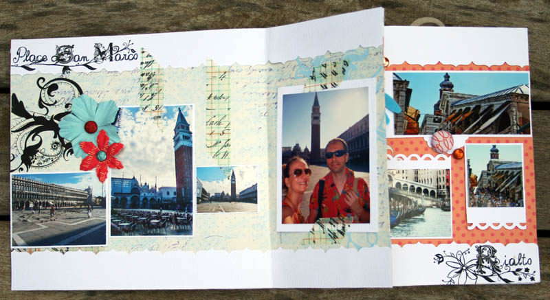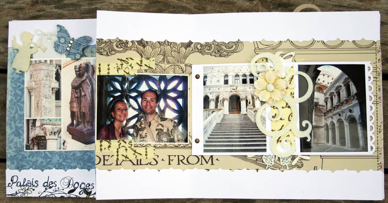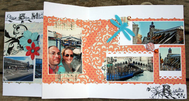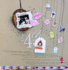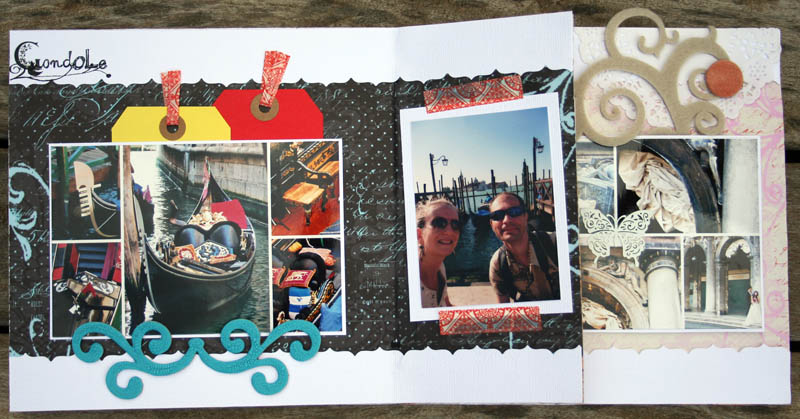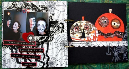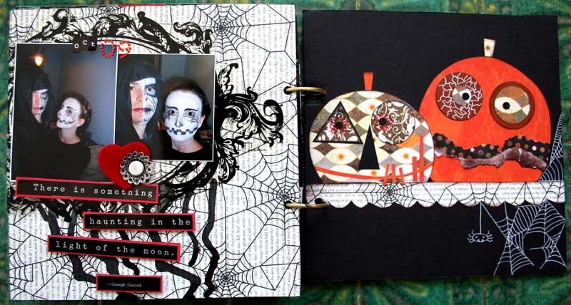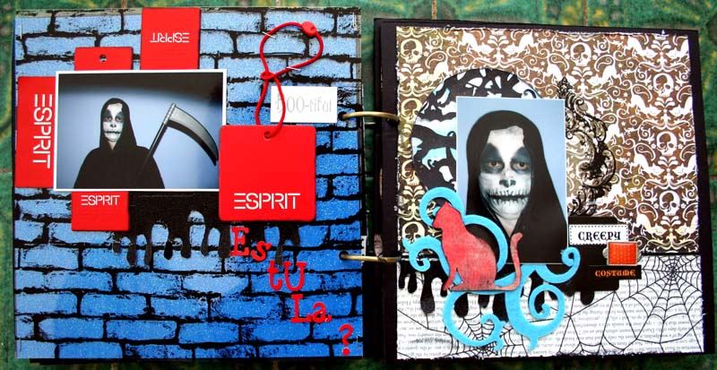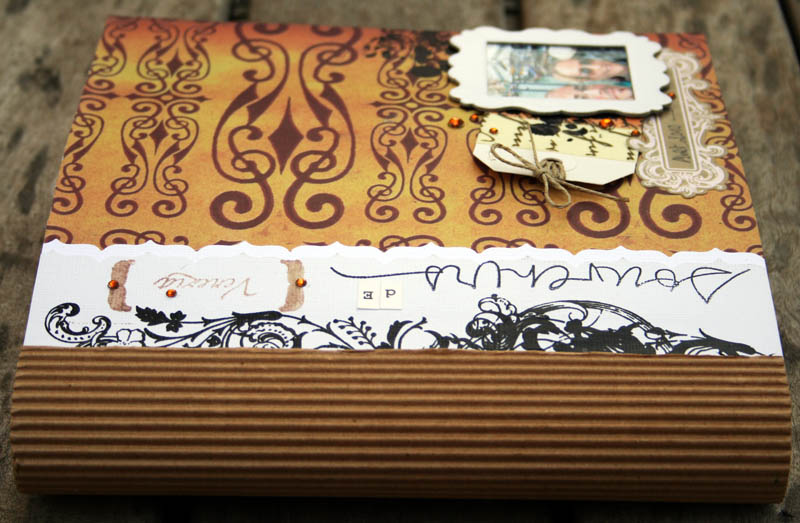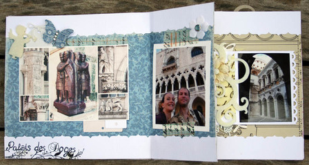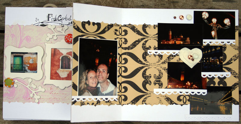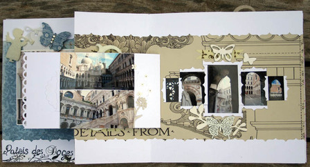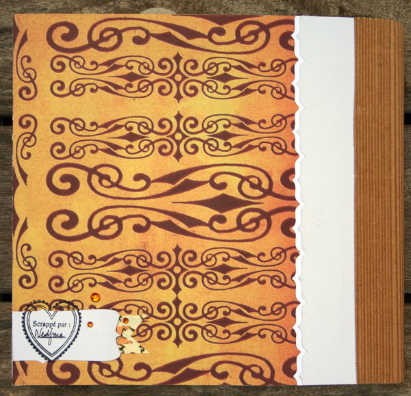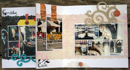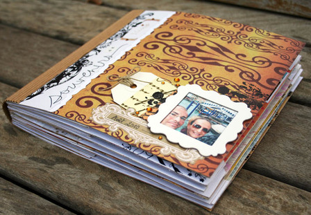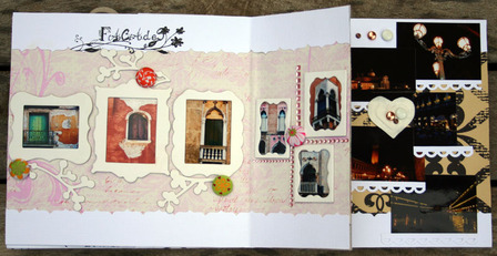 C'est un album narcissique où j'ai utilisées des photos de moi qui sont pour la majorité passées par un logiciel de dessin. C'est un album en papier et je n'avais pas fait de scrapbooking papier depuis un bon moment. Je l'avais délaissé pour le scrap digital qui m'était plus facile à utiliser surtout à cause de mon hernie discale. J'avais donc un peu peur de cette reprise, de ce contact à nouveau avec le papier, du toucher, de ne pas y arriver. J'ai donc préféré faire quelque chose de personnel afin de ne pas bousiller des photos pour rien.
