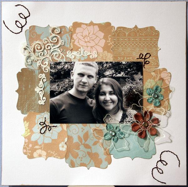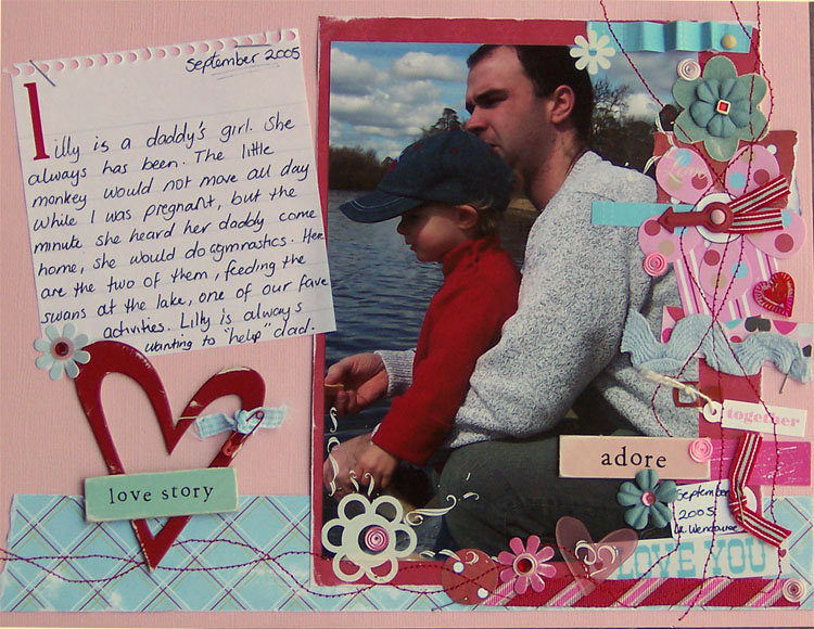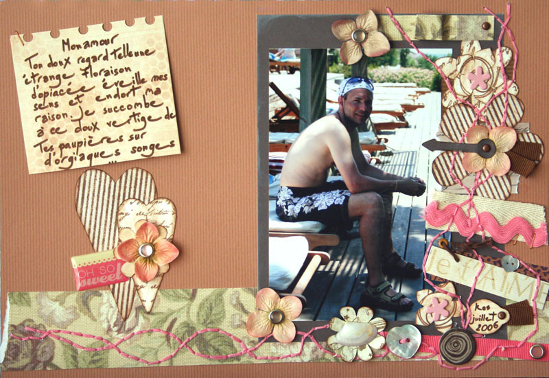 la compagnie du scrap pour participer à la seconde manche du concours et rajouter également le mot amour sur la page. J'ai eu beaucoup de mal à en choisir une car elles sont toutes belles et souvent agrémentées de couture.