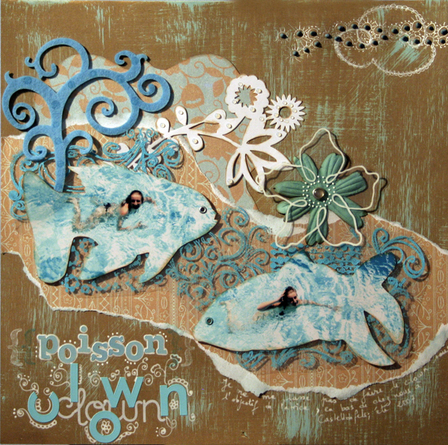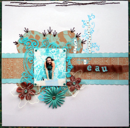 Embellissements : fleur Prima et fleur transparente faite main avec le stylo Sakura glaze blanc - doodling, Artémio - oeillets, Making Memories - attache parisienne, S.E.I - nuage fait avec de la peinture 3D de Pébéo et le stylo gel argent de Pilot - le tranparent a été embossé avec de la poudre turquoise de Ranger et les tampons Automn Leaves et Gaïa